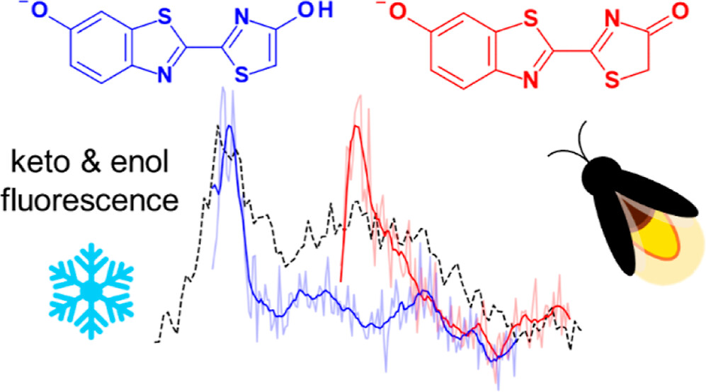 The complex of t-butanol (tBuOH) and dimethylsulfide (DMS) is detected by subtracting the monomer spectra (green and red) from a mixture spectrum (blue), resulting in a spectrum of the complex (orange).